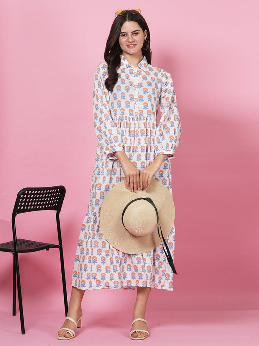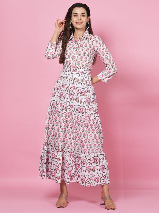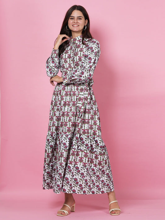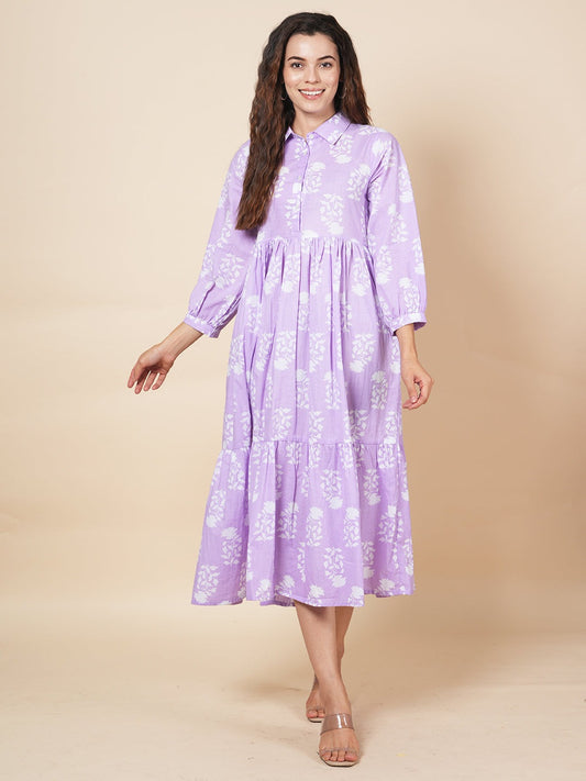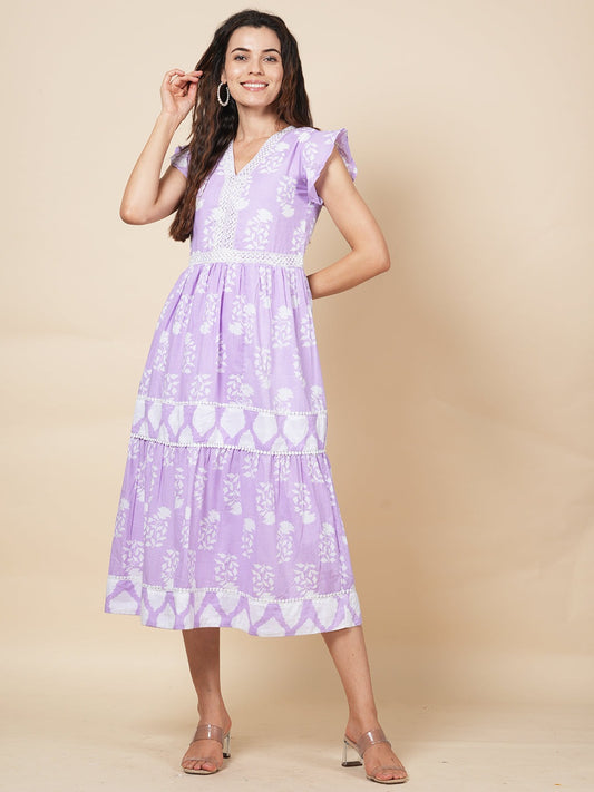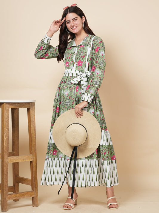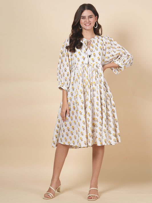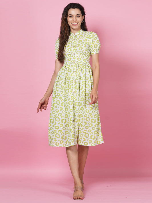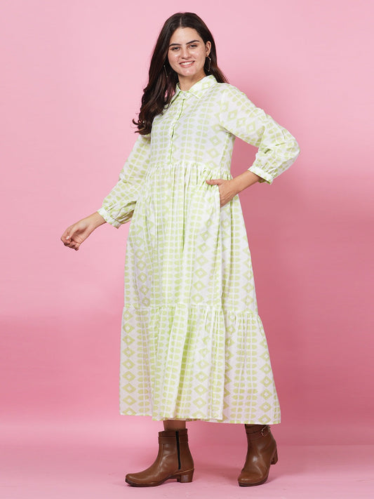 Lime Handblock Tier Dress