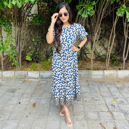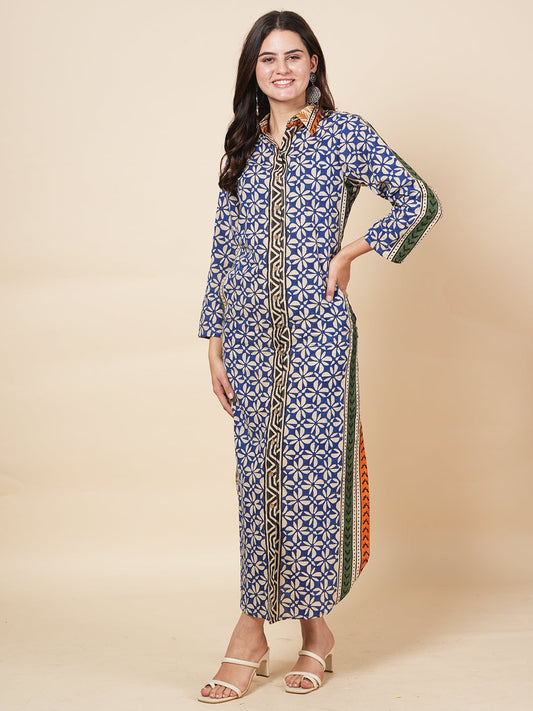 Navy Bagru Kaftan Dress