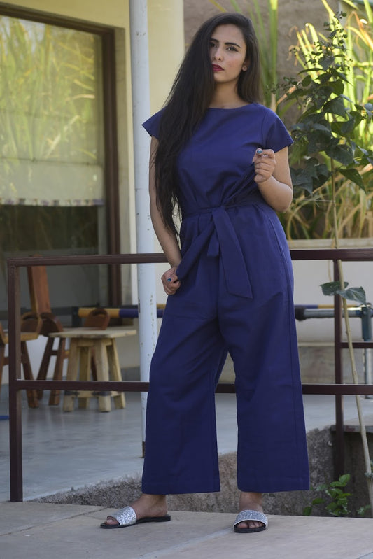 Blue Tie Up Jumpsuit