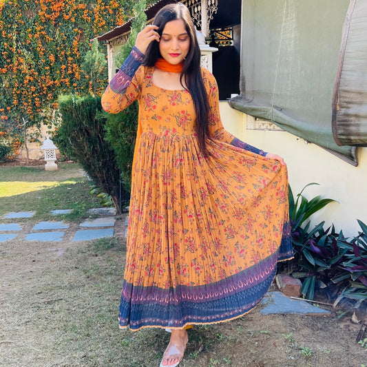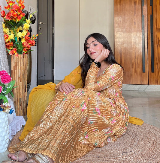 Mustard Crinkle Bouquet Suit Set