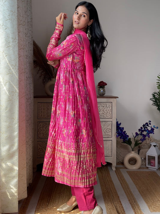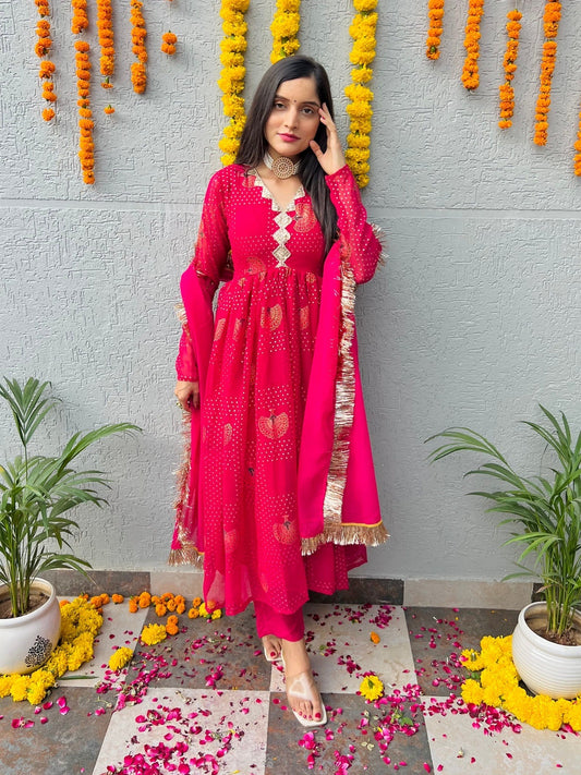 Pink Peacock Georgette Suit Set