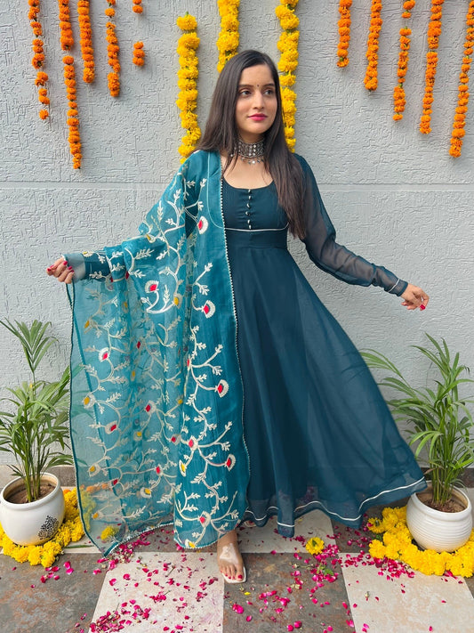 Turquoise Georgette Suit Set