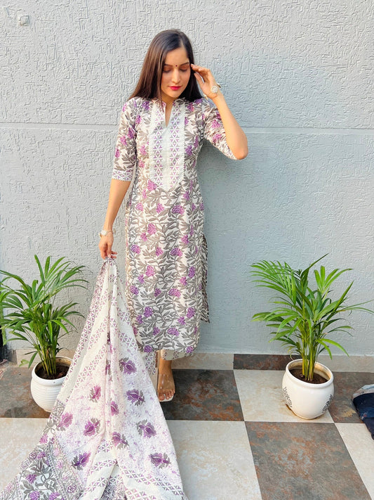 Lilac Handblock Suit Set