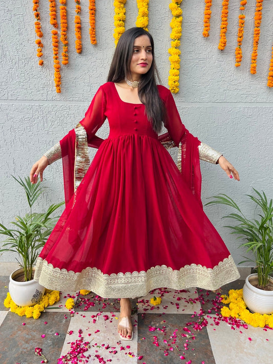 Red Georgette Suit Set