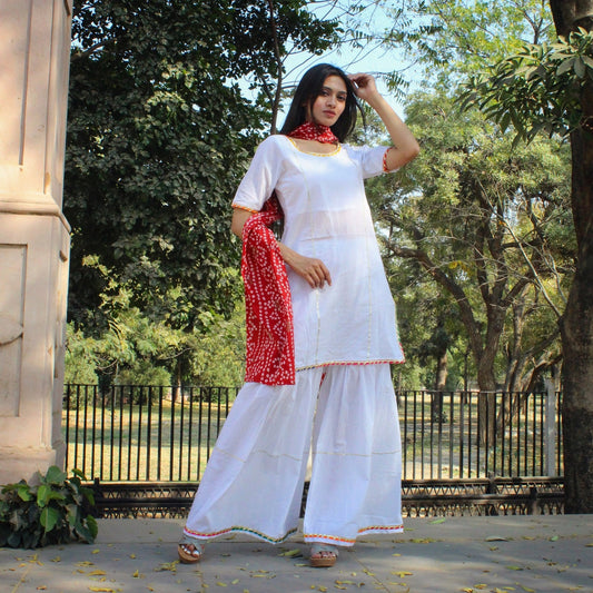 White Bhandej Sharara Set