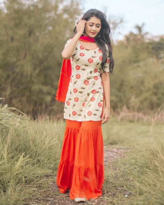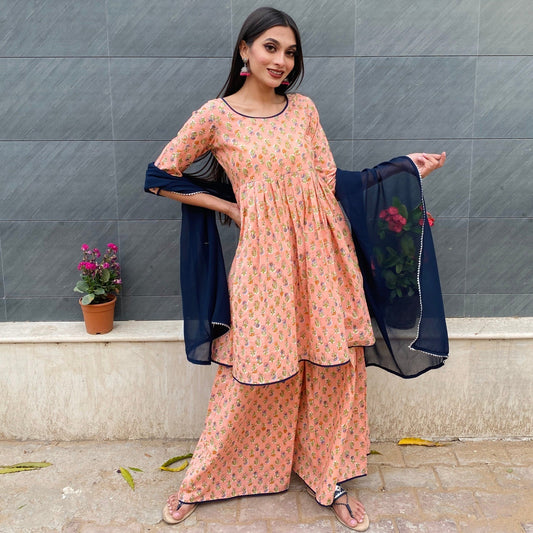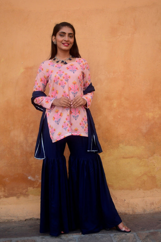 Peach Floral Sharara Set