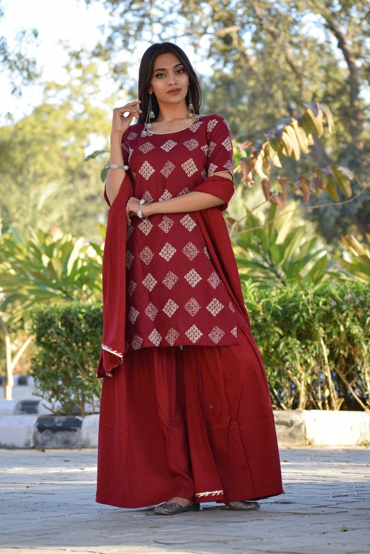 Maroon Printed Sharara Set