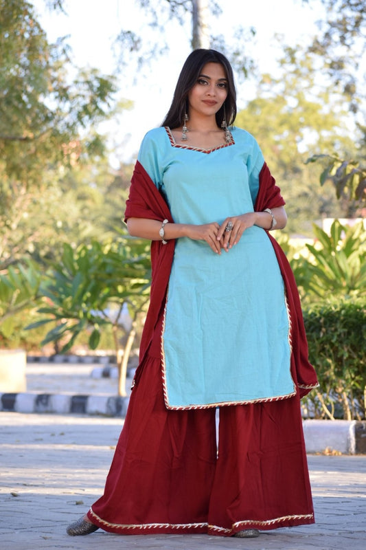 Skyblue Ethnic Sharara Set
