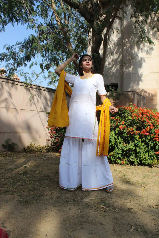 White Mustard Gota Sharara Set