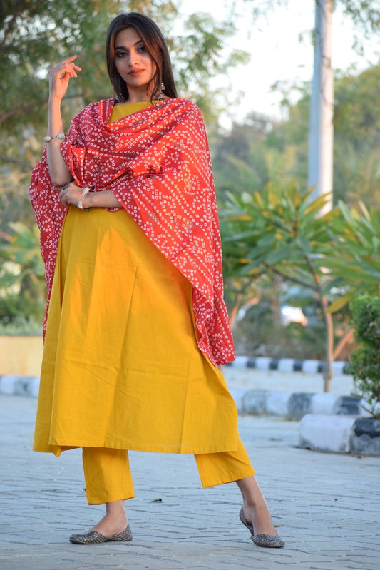Mustard Bhandej Foil Suit Set