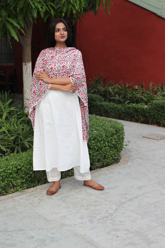 White Pink Flower Suit Set