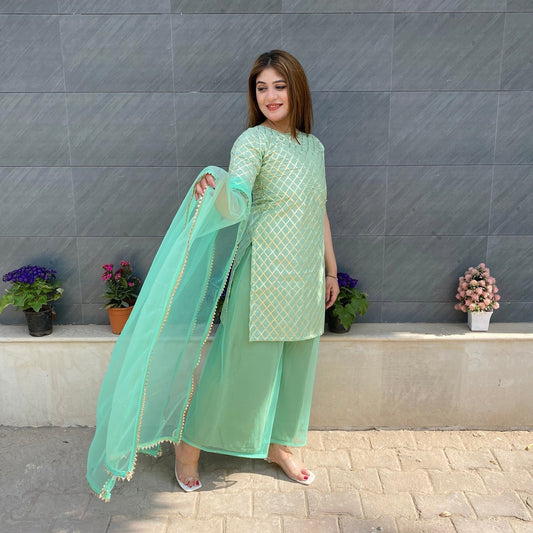 Peacock Blue Handpainted Suit Set