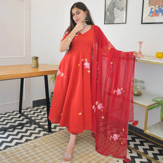 Red Handpainted Suit Set