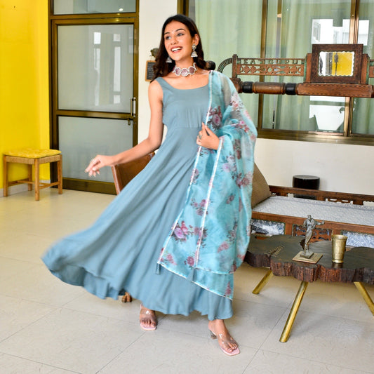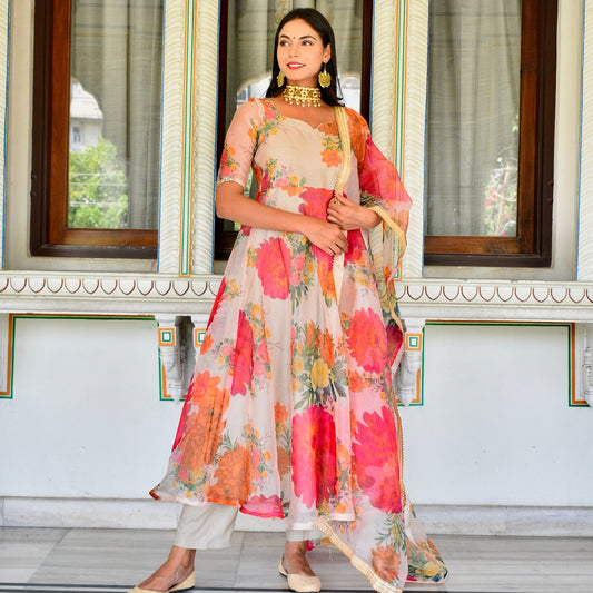 Ivory Handpainted Organza Suit set