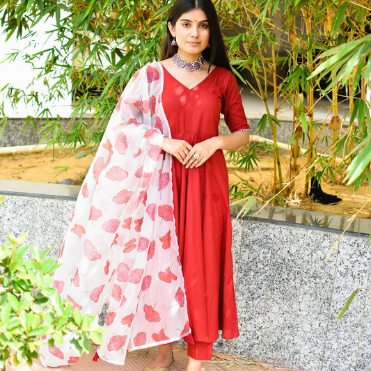 Maroon Handpainted Suit Set